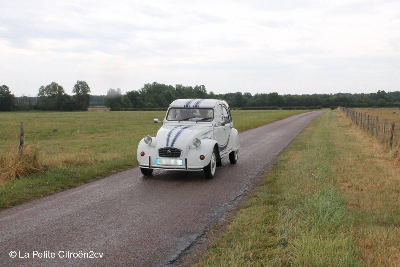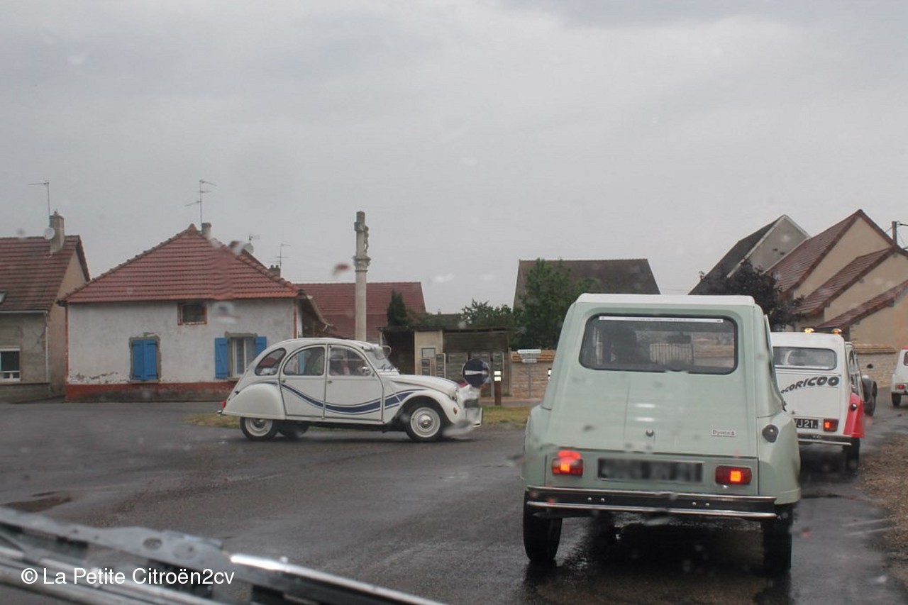 Encore une réussite cette huitième édition des 2 pattes de Bresse, rallye découverte, questions, jeux, avec parfois des passages nuageux accompagnés de pluie, mais l’ambiance était là, un repas deuchiste du samedi soir concocté par Philippe et Béatrice (restaurant de la gare) excellent par les diversités des plats, le tout dans une ambiance sympathique.. avec en prime à l’extérieur un orage très violent, ou certains deuchistes ont retrouvés dans l’habitacle de la grêle.. mais une 2cv qui ne fuit pas n’est pas une 2cv !